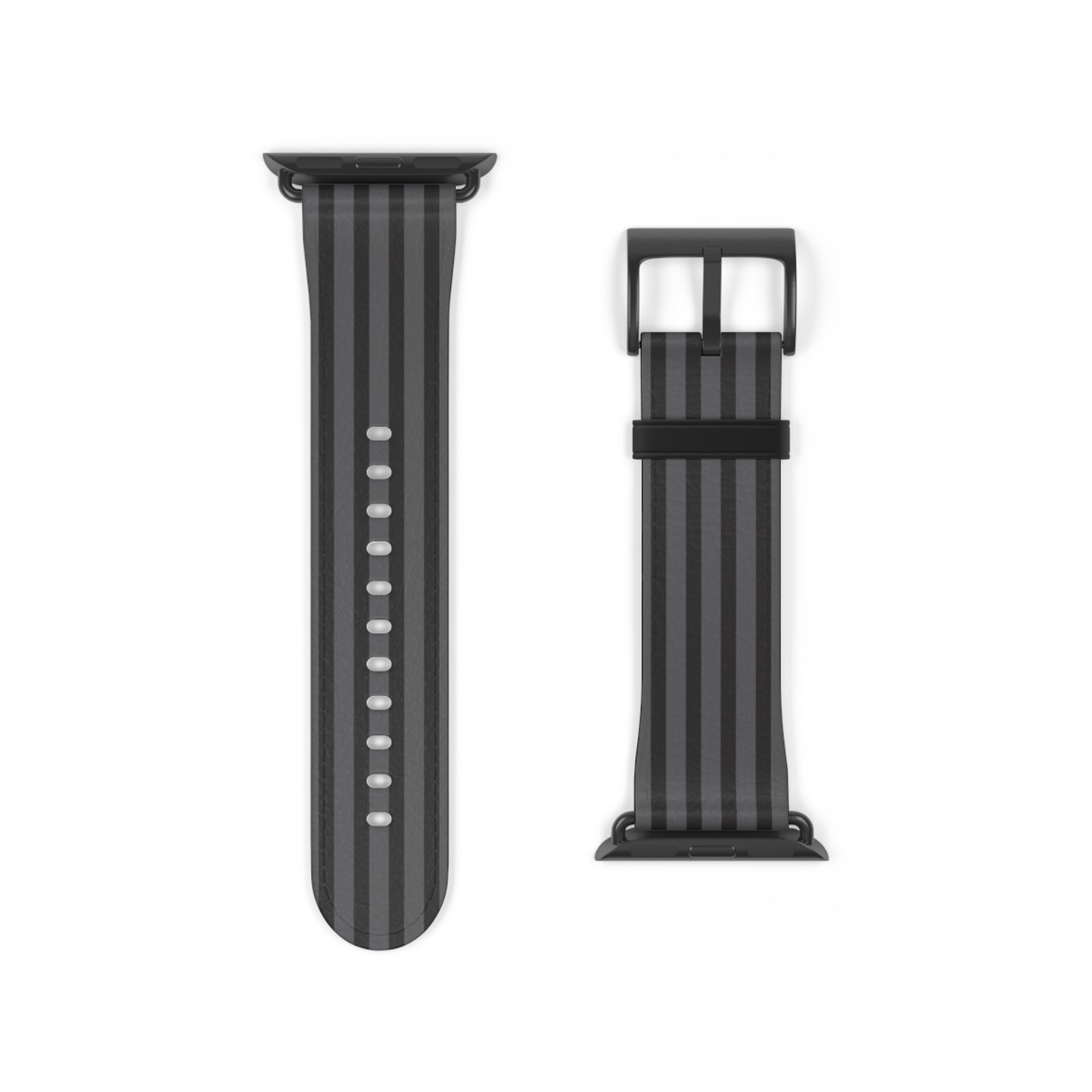 A refined watch band that brings understated texture and everyday durability to your wrist. The slim, striped design reads modern and minimal — a quiet companion that slips from workday to weekend without fuss. Made from soft, polyester faux leather with a sturdy stainless steel buckle and adaptor, this band feels familiar against the skin while resisting wear. It’s printed on one side with subtle vertical stripes that add depth without shouting, so your watch face stays the focal point. Comfortable for daily wear and compatible with a wide range of Apple Watch models, it’s for people who value clean lines, thoughtful materials, and reliable performance.